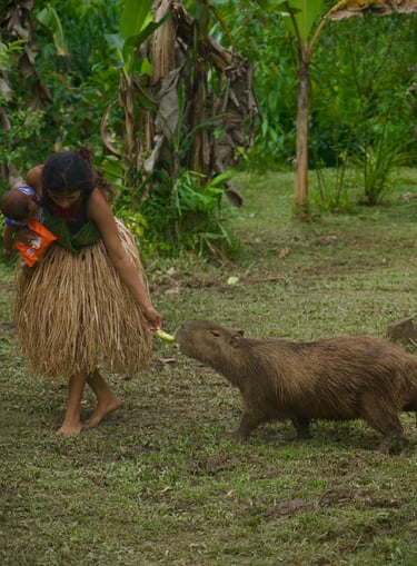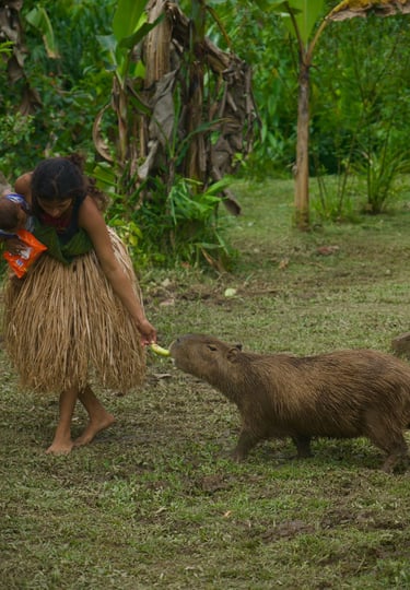Es una capibara que vive en libertad en la Amazonía ecuatoriana, específicamente en la provincia de Pastaza. Este animal, llamado Dulce, es parte de un emprendimiento turístico que ofrece la experiencia de convivir con capibaras en su hábitat natural.